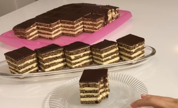 Kada je gotov biskvit polijte mlekom i od njega napravite 4 kore.