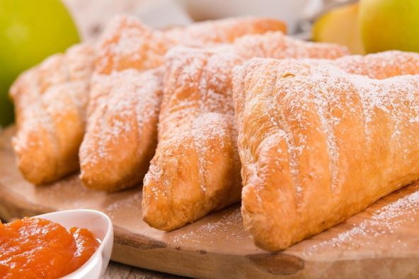 Izrežite testo na kvadratiće pa u svaki stavite malo pekmeza. Preklopite ih i zalepite prstima i pecite oko 15 minuta na 180-200 stepeni.