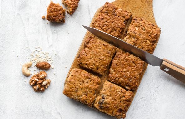 Sastojci: 1 šolja ovsenih mekinja, 1 šolja raženog brašna, 1 šolja kiselog mleka, 1 šolja mlevenih oraha, 100 g kokosovog brašna, 1 kašika smeđeg šećera, 1 šolja mlevenih badema, 4 kašike maslinovog ulja, 2 jaja.
