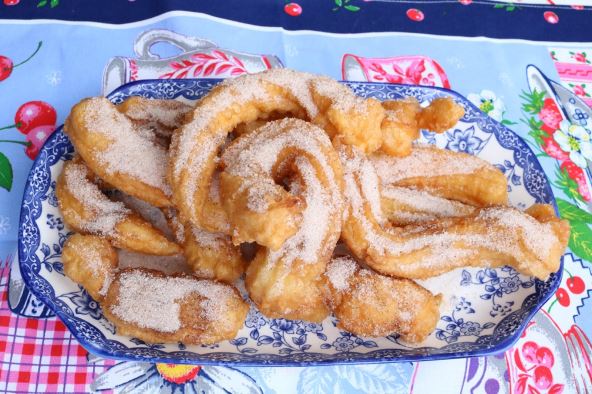 U činiju sipati malo šećera pomešanog sa prah šećerom i dodati cimet. Ćurose uvaljati u šećer i služiti tople.