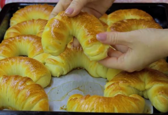 U jednu vanglicu dodajte toplo mleko pa zatim ulje, dva belanca, jednu kašiku šećera i jednu kesicu suvog kvasca pa promešajte. Postepeno dodajte jedan deo brašna i kašičicu soli pa mesite uz dodavanje ostatka brašna.