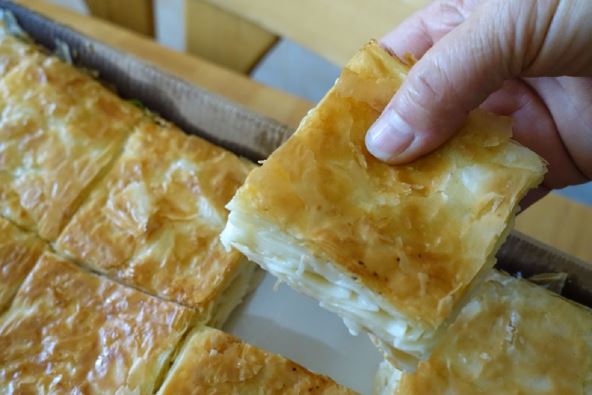 Listove za pite i ostavite zarolane kao što ste ih dobili u pakovanju pa ih isecite na trake širine dva centimetra.