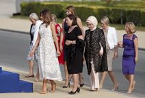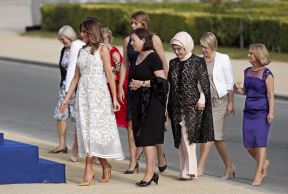Žene čelnika NATO-a na zajedničkoj večeri: Melanija romantična i moderna, Brižit Makron strogo poslovna! (FOTO)