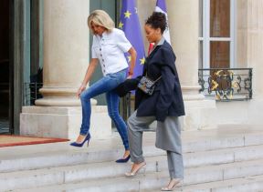 Svi su gledali u njenu pozadinu: Bridžit Makron u preuskim farmericama (FOTO)