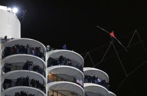 Hodao na žici između tri oblakodera: Sa povezom na očima i bez bezbednosne mreže! (FOTO, VIDEO)