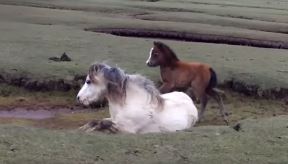 Divlje ždrebe je nervozno trčalo oko povređene majke: Nije se odvajalo od nje, a onda joj je konačno stigao spas! (VIDEO)