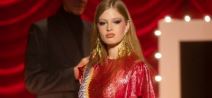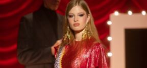 Predivna Beograđanka Mila oduševila na reviji u Njujorku: Manekenka obukla kombinaciju od hiljadu zlatnih peruški i sijala u staroj crkvi