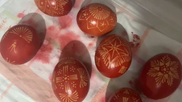 Pre nego što skuvate jaja vrućim voskom uz pomoć štapića ih išarajte. Zatim rastvorite boju u ključaloj vodi i ostavite da se ohladi, a onda ubacite jaja i vratite na vatru dok ne budu gotova.
