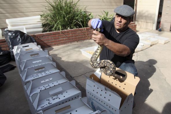 Školski nastavnik iz jednog kalifornijskog grada držao je u kući između 300 i 400 pitona zajedno sa miševima i pacovima, a njegove ljubimce otkrili su policajci nakon prijave od strane komšija zbog nepodnošljivog smrada