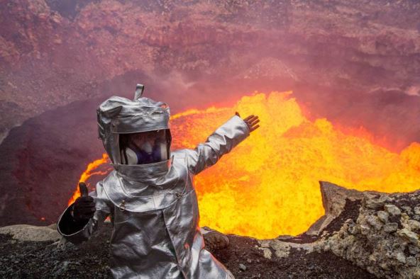 Istraživač se toliko približio lavi koja ključa da mu je od nje ostala istopljena rupa na jakni, kao i na nekoliko delova kamere.