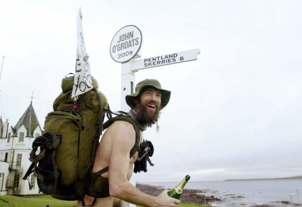 Stiven Piter Gou, kome je britanska štampa nadenula nadimak "goli šetač" nakon odluke da prepešači zemljom u Adamovom odelu, osuđen je nekoliko puta u Škotskoj zbog remećenja javnog reda i mira i uvrede sudija pred kojima se redovno pojavljivao "ko od majke rođen".