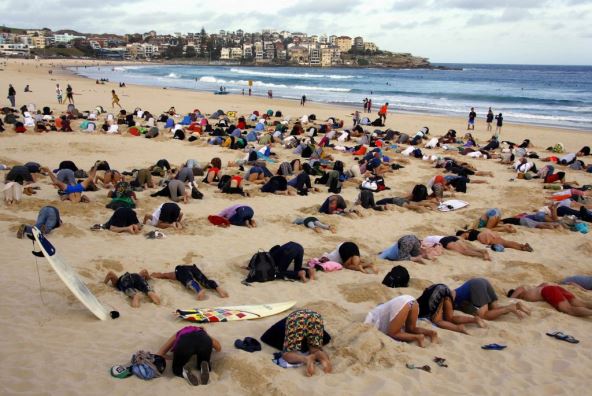 Kako prenose lokalni mediji, akcija protiv globalnog zagrevanja okupila je na Bondi Biču više od stotinu ljudi koji su tokom tri minuta držali glavu u pesku u znak protesta.