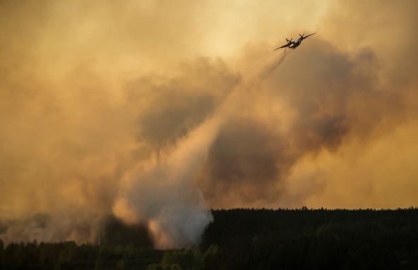 U blizini nuklearne elektrane Černobilj stotine vatrogasaca pokušavaju da spreče širenje šumskog požara kako ne bi ugrozio postrojenje i prouzrokovao novo širenje radijacije. Ukrajina je u stanje pripravnosti podigla i rezervne snage Nacionalne garde i policiju, a požar za sada gasi 182 vatrogasca sa 34 vozila.