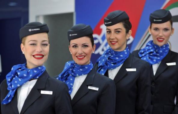 Teget kapice ispod kojih su kose pokupljene u punđu, plava marama oko vrata, bela košulja ispod teget sakoa i osmeh na licu, deo je imidža stjuardese koja će vas sačekati na ulasku u avion naše nacionalne aviokompanije.