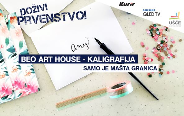 Samo 02.07. od 17 do 19:30 časova se upoznajemo sa osnovama kaligrafije, osnovnim alatima za lepo pisanje i potezima gde će 5 polaznika moći da u toku radionice vežbaju da napišu svoje ime i tekst po želji.